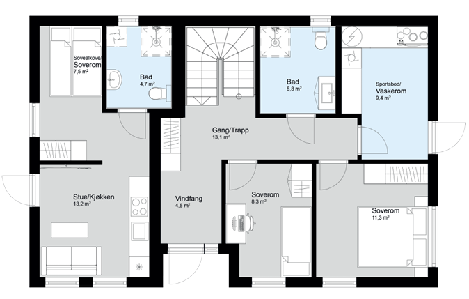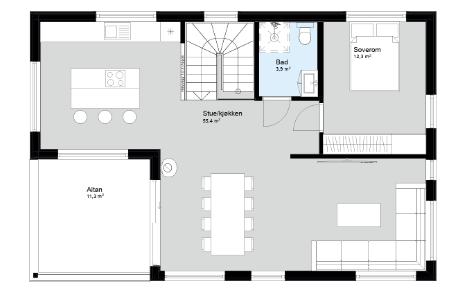 Med egen utgang fra vaskerommet, god bodplass og tydelig soneinndeling er Casa en bolig som gir deg mange muligheter – både i hverdagen og på sikt.